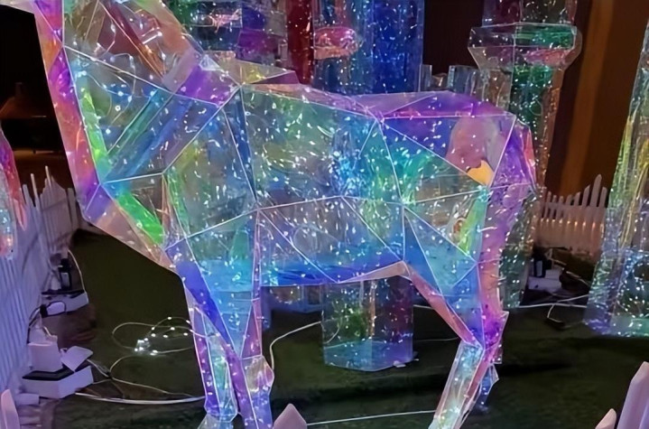 其中来旅游的一家三口,爸爸姆妈正带着孩子在大堂转悠,孩子一眼就被边缘阿谁挂着彩灯的动物模子招引,连蹦带跳就跑了当年。