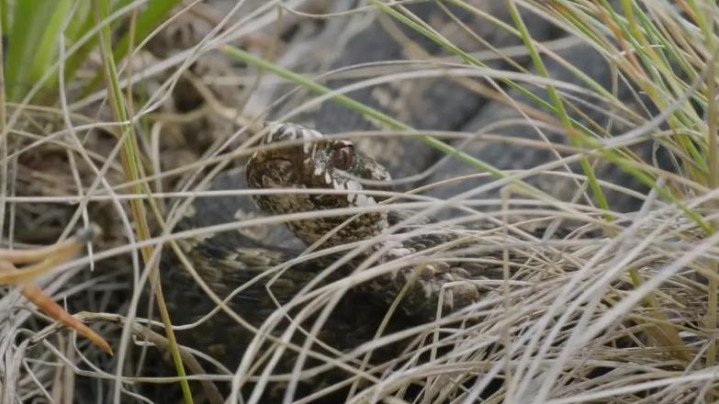 它的身体样式跟周围环境很像,多是褐色或黄绿色,带点花纹,平方躲在草丛、石堆里,遏制易被发现。