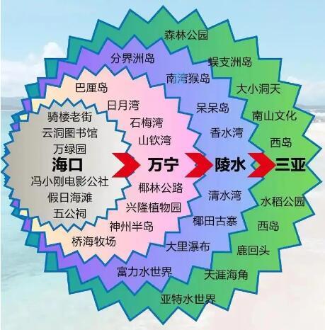 蜈支洲岛:被誉为中国的“马尔代夫”,位于三亚市海棠湾内,是海南岛周围为数未几的有淡水资源和丰富植被的小岛。岛上情景崴蕤,海水澄澈见底,是进行水上活动和潜水探险的绝佳地点。