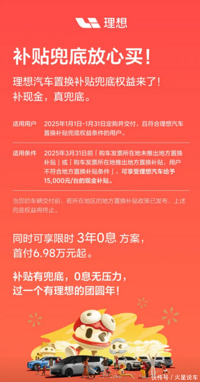 设想汽车最初推出了置换补贴兜底权力,关于在2025年1月1日至1月31日历间订购并委派且妥当兜底适用条款的用户,赐与15000元/辆的现款补贴。