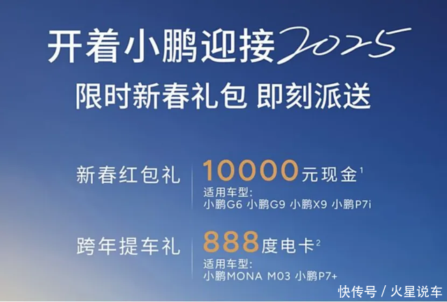 小鹏汽车则文告购买G6、G9、X9和P7i等车型可享10000元现款补贴,同期关于在1月26日24点前锁单且甘休1月28日24点仍未收到提车见知的小鹏MONA MO3、小鹏P7+客户,还可取得888度电卡。