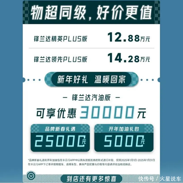 广汽丰田也推出了购车优惠战略,即日起至2025年1月31日购买锋兰达燃油版车型,最高可享3万元优惠礼遇。这一战略不仅涵盖了现款优惠,还可能包括保障补贴、防止施济等多种时势的优惠。