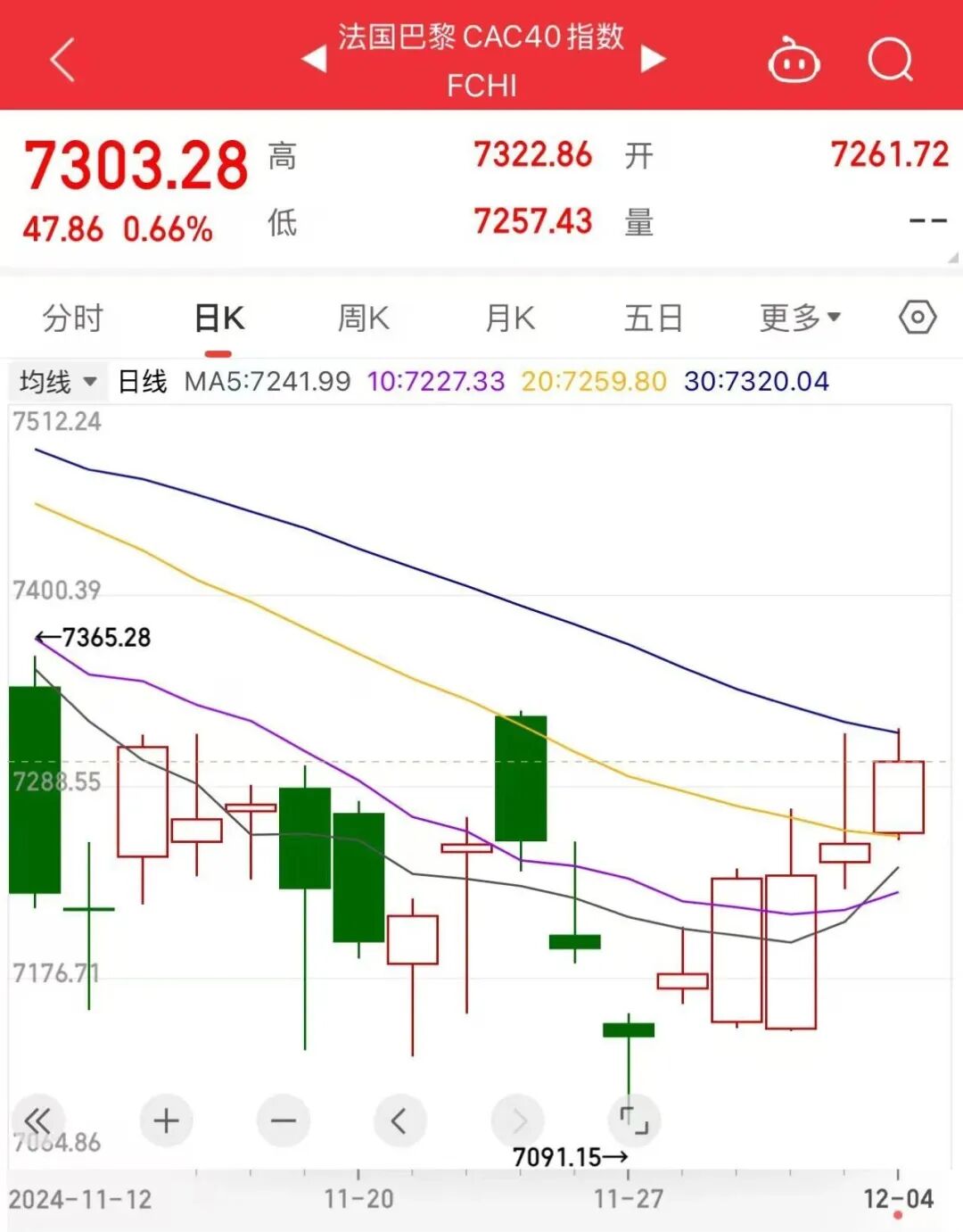 有分析指出,遇到重创的法国股市也曾消化了巴尼耶政府可能下台的大部分压力,大量的负面成分可能也曾融入金钱订价中。因此,若最坏情况莫得出现,法国CAC指数可能短期反弹。