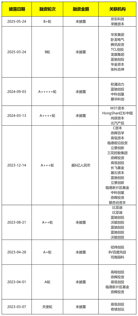 2022 年下半年,智元机器东谈主尚在筹备中时,高瓴创投就对其进行了种子轮投资,奇绩创坛也在归拢时代参与了首轮投资。2023年细腻成立以来,智元机器东谈主赢得9轮融资,仅在2023年底的一轮融资中,就赢得了超6亿元的投资,而那时公司成立还不到一年时候。9轮融资中亦然大佬云集,既包括顶级好意思元机构高瓴创投、鼎晖投资、高榕创投、经纬创投、蓝驰创投、红杉中国等,也有比亚迪、立景翻新、尚颀成本、百度、软通能源、卧龙电气等产业方。