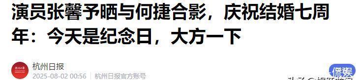 杭州日报——演员张馨予晒与何捷合影,庆祝成婚七周年:今天是回想日,大方一下——2025年8月2日