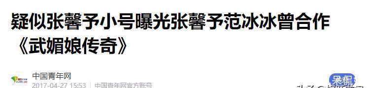 中国青年网——疑似张馨予小号曝光张馨予范冰冰曾合营《武媚娘传说》——2017年4月27日