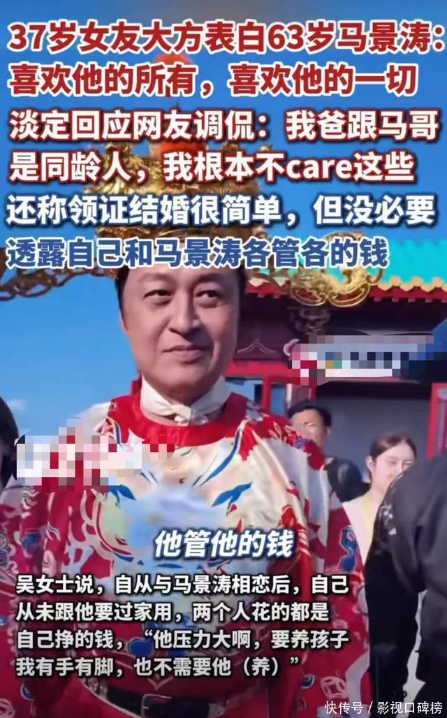 关于和比我方大26岁的男友相处时,不少网友质疑其主义是马景涛的钱。但是她在直播间中证实谈“我岂论财政大权,我管我的钱,他管他的钱”,辟谣并非天下质疑她是图钱才和马景涛恋爱,而是勉力强调“可爱他的是以,可爱他的一切”。