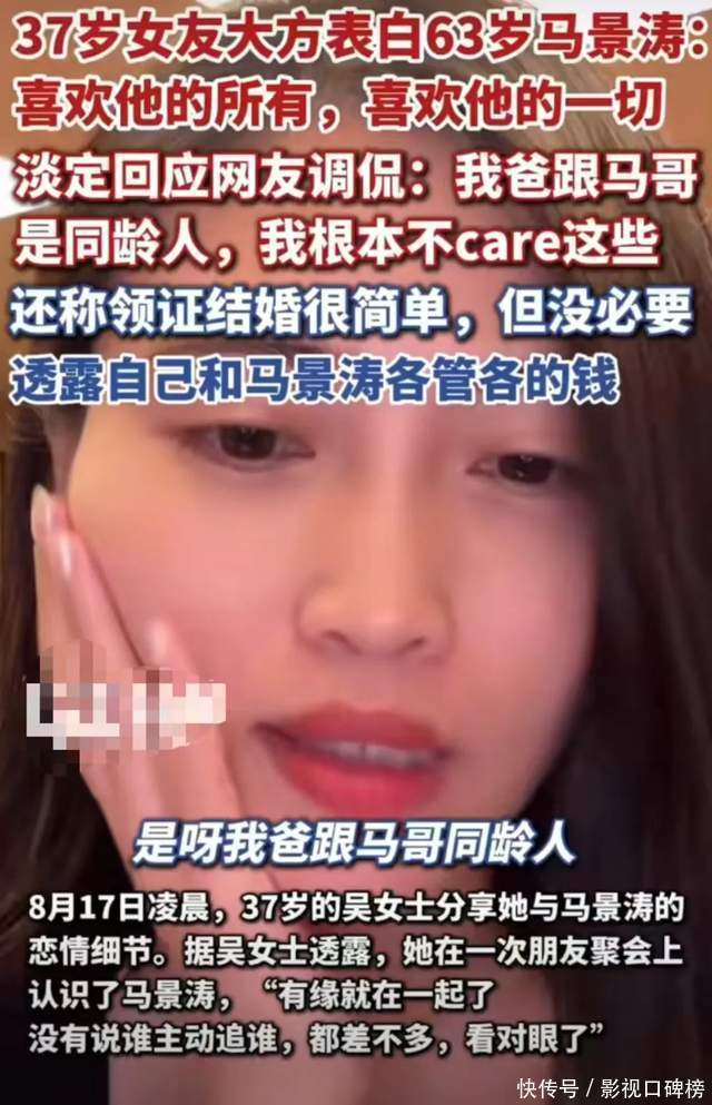 天然马景涛的女友吴女士也直言,我方和马哥在沿途好几年,并非最近才运行炒作,而且在未公开恋情的日子里,他们也在过着自制常淡的生活。是以关于两个东谈主收支26岁年龄差的爱情,不少网友天然不睬解,但更多的是尊重和道喜。