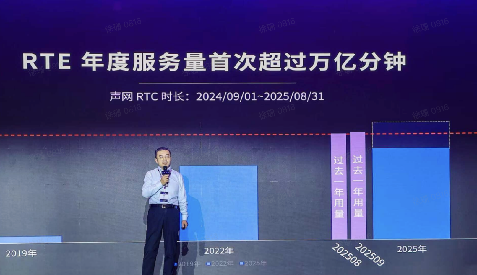 声网首创东说念主兼 CEO 赵斌在开场演讲汉文书了一个里程碑:声网年度就业分钟数初度随便 1 万亿分钟,秀丽着 RTE 手艺已成为数字社会不行或缺的基础圭表。